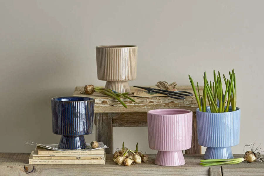 Die Kanne Ayleen Rose von Bloomingville ist eine elegante Dekoration, die jedem Interieur Charme verleiht. Er ist aus Steingut gefertigt und besticht durch seine erhabene Form und das einzigartige Rippenmuster in der Glasur. Jeder Topf ist aufgrund der natürlichen Variationen, die beim Glasieren entstehen, ein Unikat.