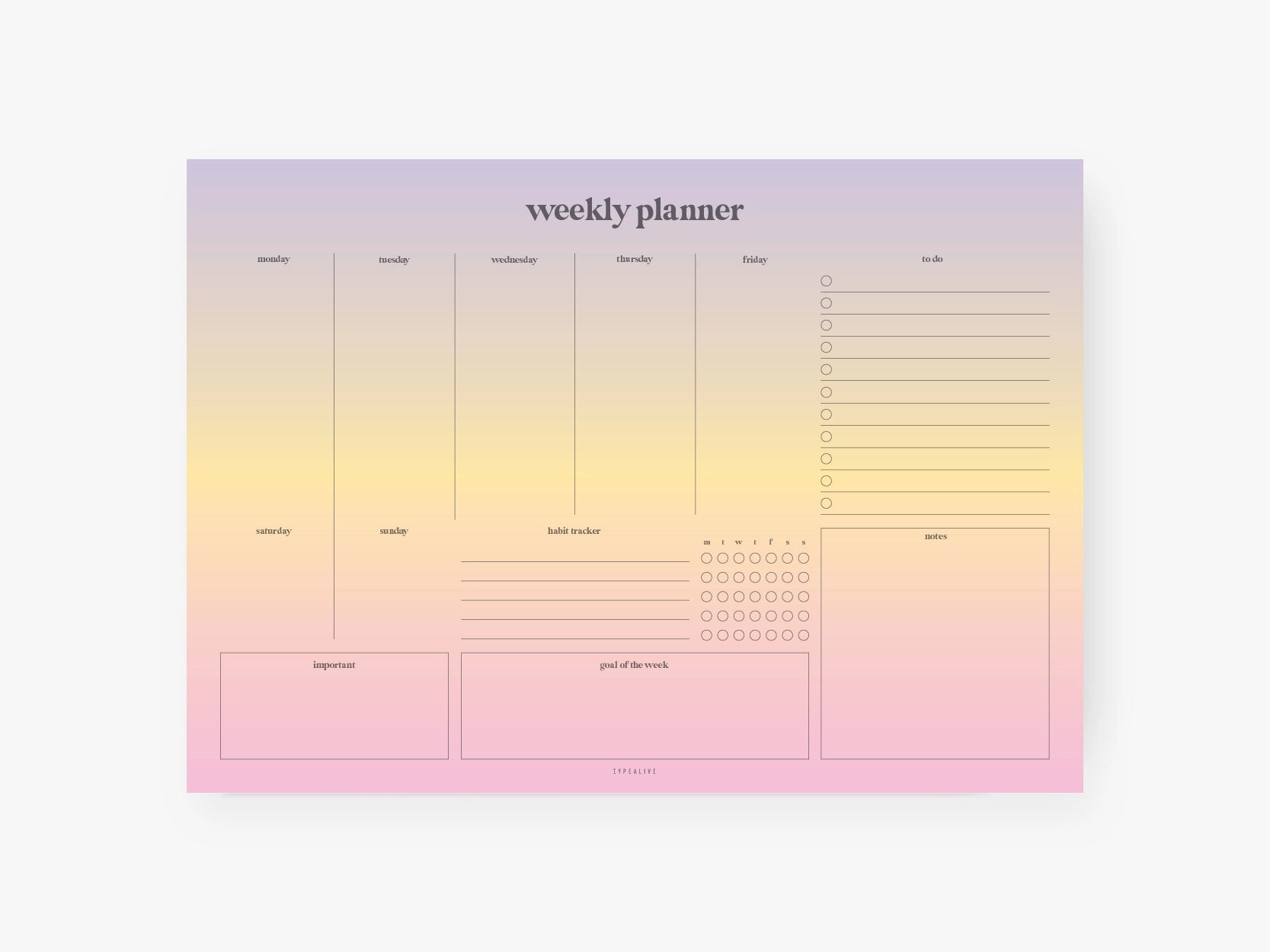 WOCHENPLANER SUNSET